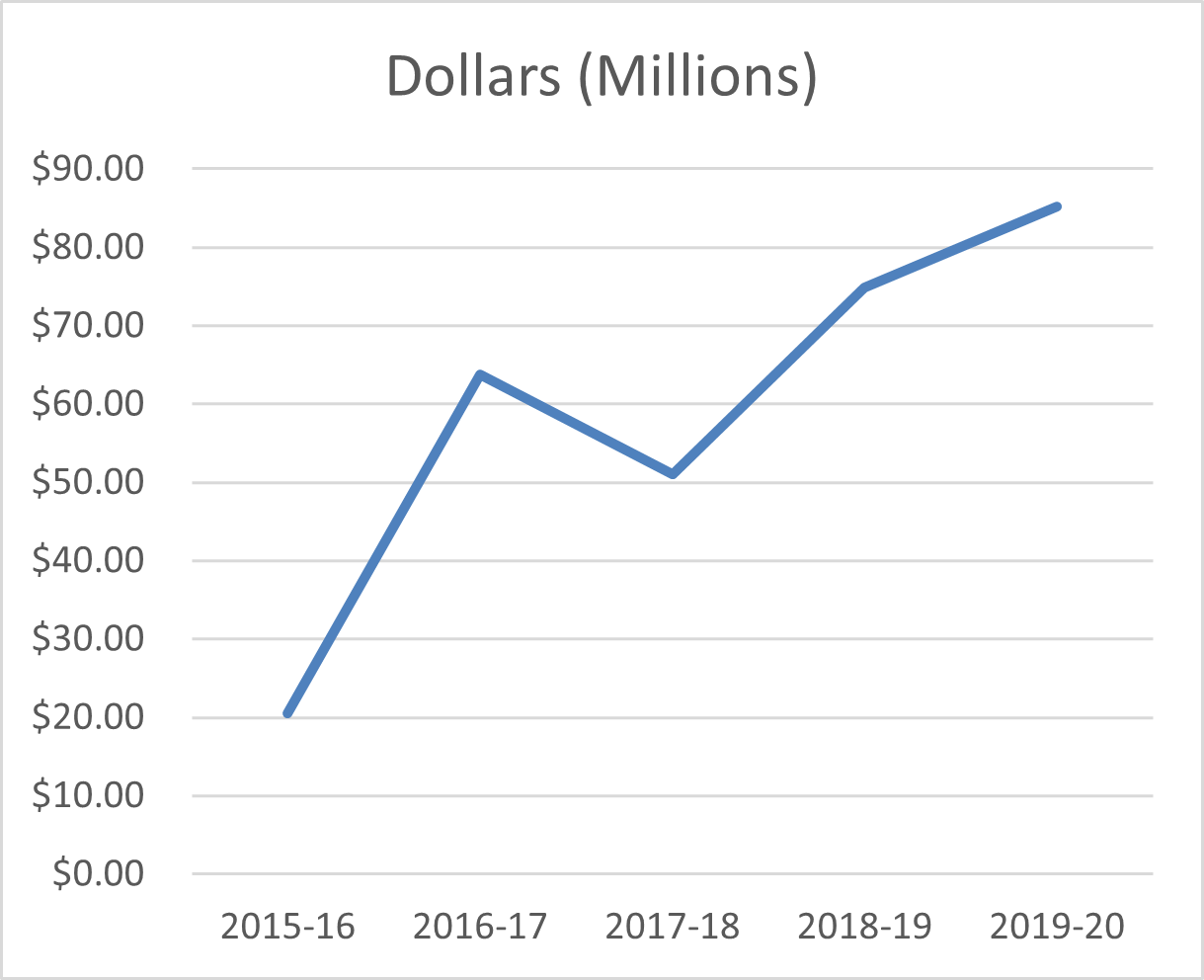 The number of VAC clients with active authorizations for CMP has been increasing year over year resulting in a 660% increase between 2015-16 and 2019-20. Costs for CMP reimbursements have increased significantly as well. See Figure 2 for details.