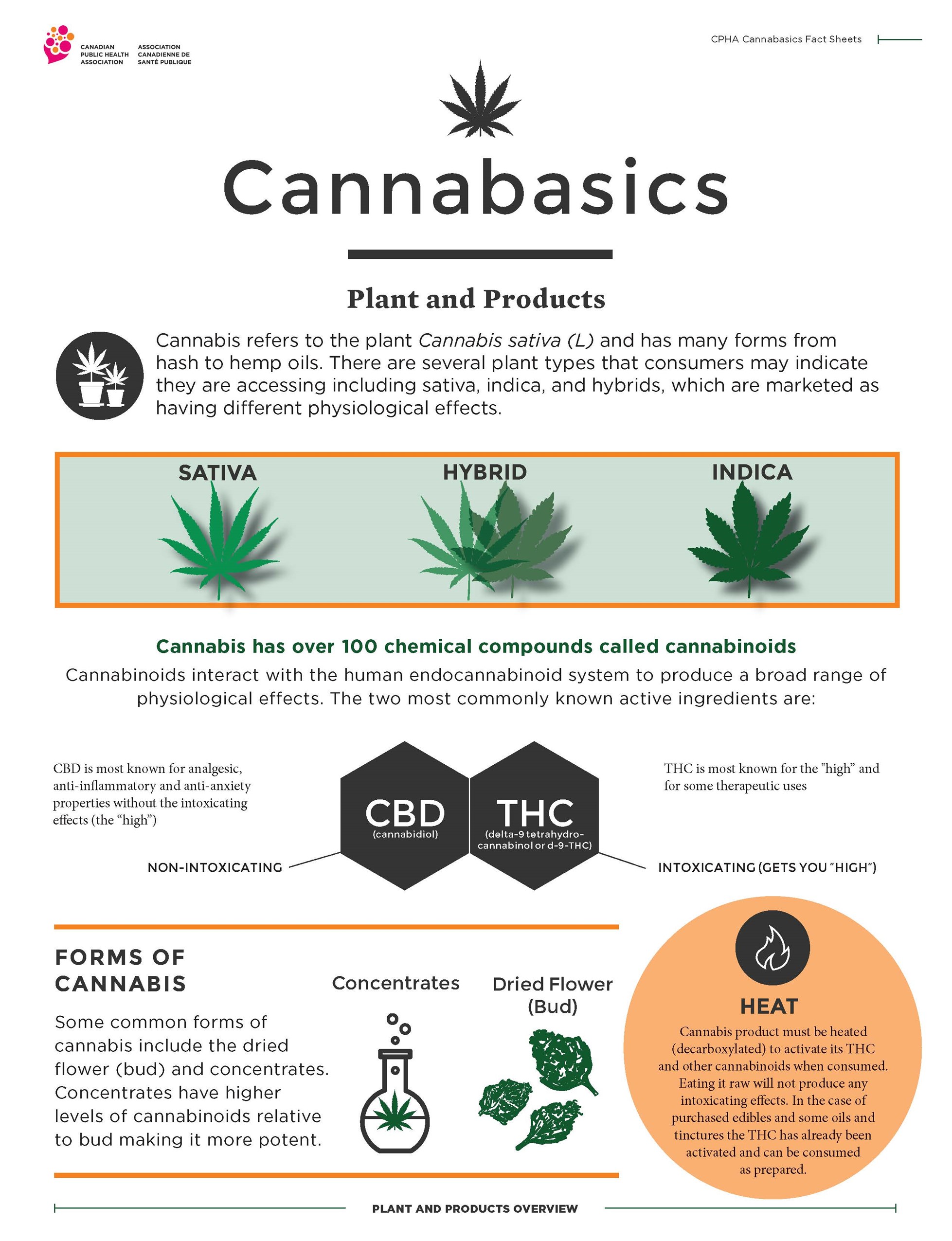 The following fact sheet, shown in Figure 1, provides a basic overview of common cannabis plants and products, methods of consumption as well as information to better understand consumption and harm reduction.
