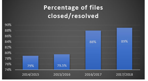 Figure 1: Percentage of Files Closed/Resolved by the OVO