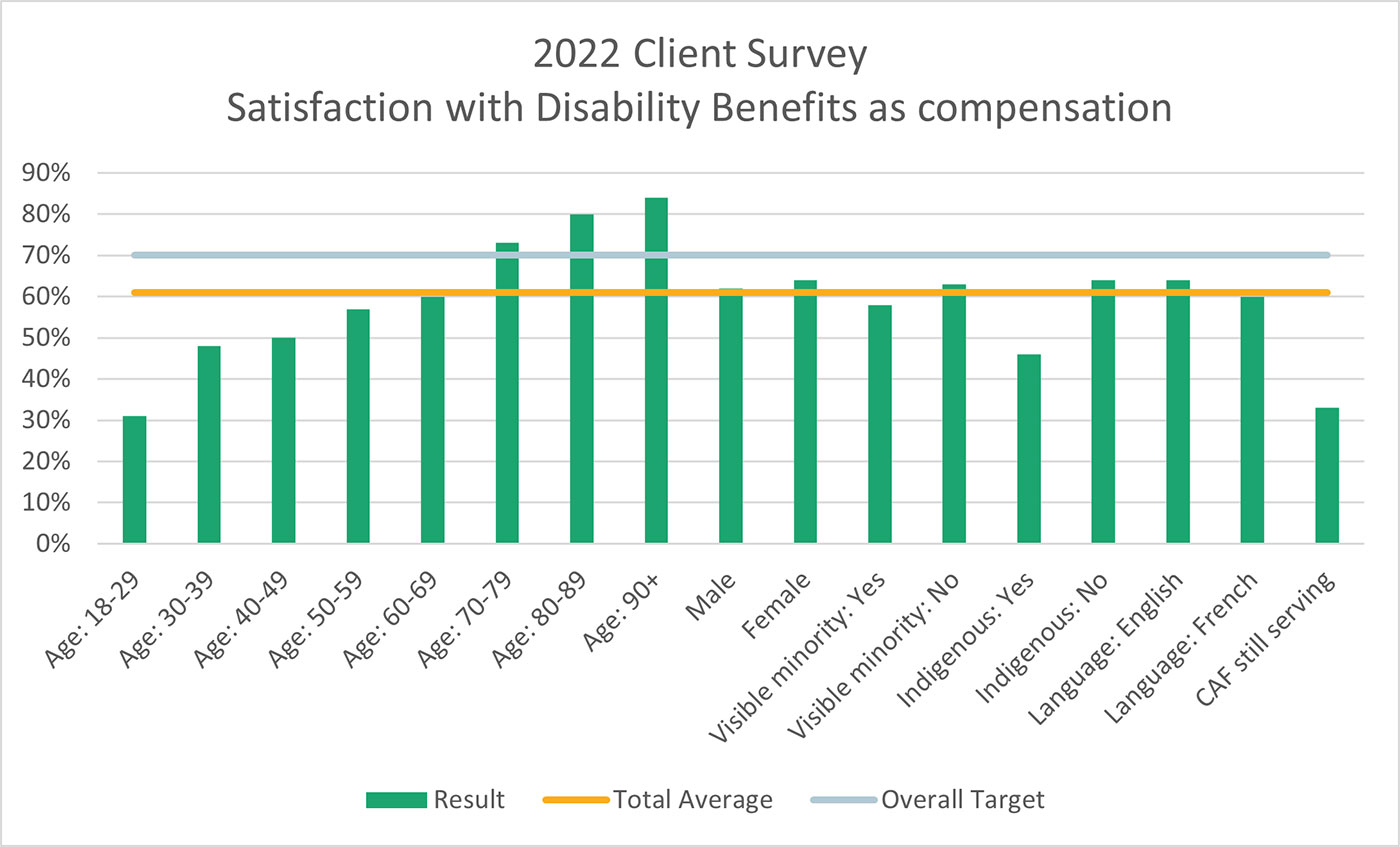 Veterans Affairs Canada's (VAC's) mandate is to support the well-being of Veterans and their families, and to promote recognition and remembrance of the achievements and sacrifices of those who served Canada in times of war, military conflict and peace. One way VAC accomplishes this is by providing compensation to Veterans in recognition of disabilities related to their military service, or that have been aggravated by their service. There are a suite of disability benefits available, with the main benefits being Pain and Suffering Compensation (PSC) and Disability Pensions (DP). VAC delivers the suite of benefits through the Disability Benefits (DB) program. The DB program has been VAC's signature program for many decades, and is often the program for which Veterans first apply for benefits from the department. PSC is the most recent evolution of the compensation offered that provides recognition to Veterans and serving CAF for permanent service-related disabilities
