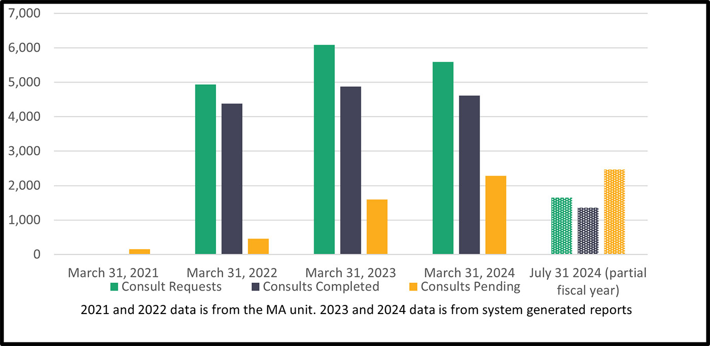 - The Director General, Health Professionals Division ensures that the appropriate processes and resources are available to both reduce the current number of applications awaiting a consult, and provide a timely response to future medical consult requests.