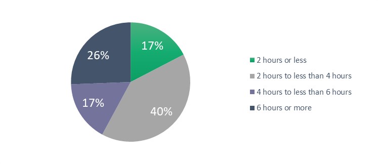 Interviews with frontline staff and head office staff indicated that the VEF creates a large administrative burden (both for those directly serving Veterans and those managing the program). Of particular concern, 43% of frontline staff surveyed indicated it takes four or more hours to process a VEF decision. It was commented that decisions for other VAC programs with larger financial impacts are much easier to action and document. See Figure 8 for a breakdown of estimated time to process a VEF decision.
