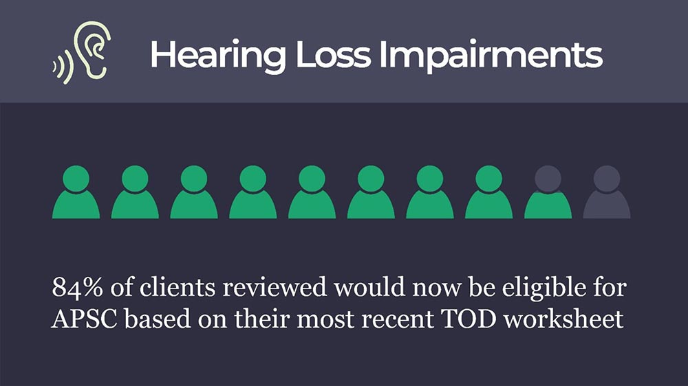 84% of clients reviewed would now be eligible for APSC based on their most recent ToD worksheet