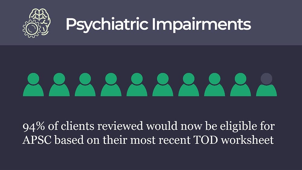 94% of clients reviewed would now be eligible for APSC based on their most recent ToD worksheet