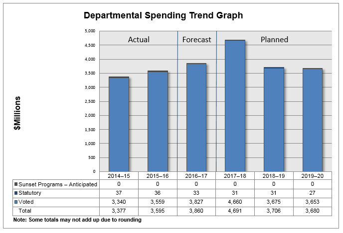 VAC is forecasting to increase spending by 22% ($832 million) in 2017–18, when compared with forecast spending of $3.9 billion in 2016–17. The majority of this increase is related to the Budget 2016 commitment to restore critical access to services for Veterans, as well as ensure the long-term financial security of disabled Veterans.
