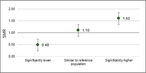 With this in mind, the subpopulation with the highest rate does not always reflect the greatest excess risk; focusing on rates in the absence of contextual interpretation in the form of SMRs may result in resources not being allocated to the group with the most important excess risk. By focusing on the populations for whom there are substantial excess risks, and for whom many of the risks may be modifiable, the more likely an intervention is to be successful.