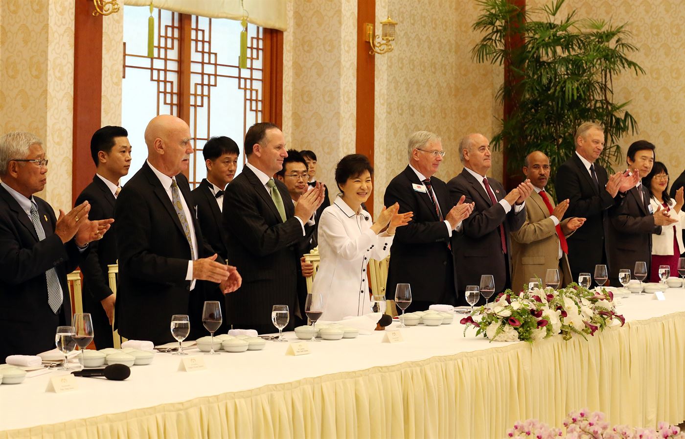 Members of the Head Table, including Canadian Veterans Affairs Minister Julian Fantino and Korean President Geun-hye Park applaud Veterans during VIP luncheon at Blue House.