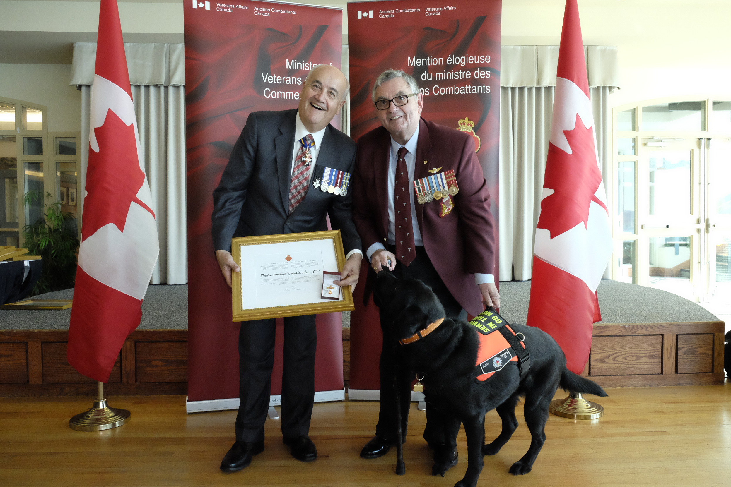 The Honourable Julian Fantino, Minister of Veterans Affairs, with Minister of Veterans Affairs Commendation recipient Padre Arthur Donald Lee at a ceremony in Victoria honouring individuals for their exemplary service to Veterans.