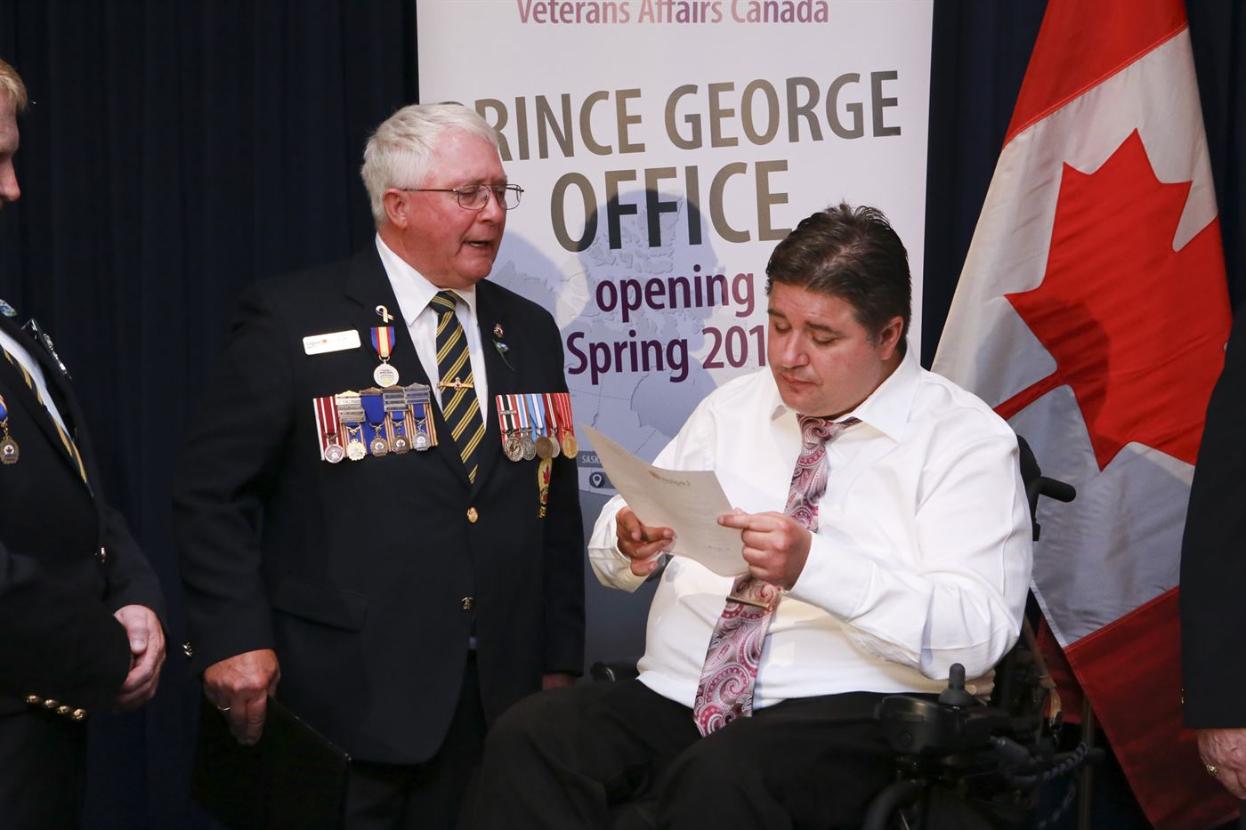 The Honourable Kent Hehr, Minister of Veterans Affairs and Associate Minister of National Defence, joined Veterans and their families on August 29 in Prince George, British Columbia, to announce that the previously closed Veterans Affairs Canada office will reopen by May 2017.