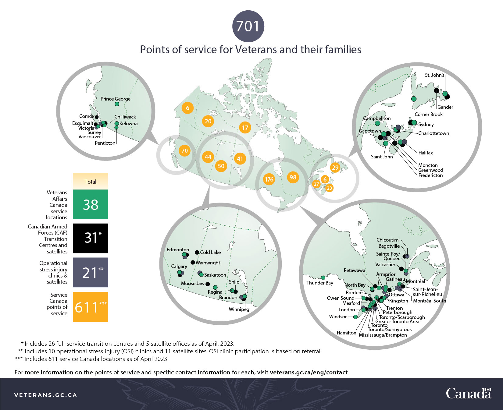 For more information on the points of service and specific contact information for each, visit veterans.gc.ca/eng/contact.