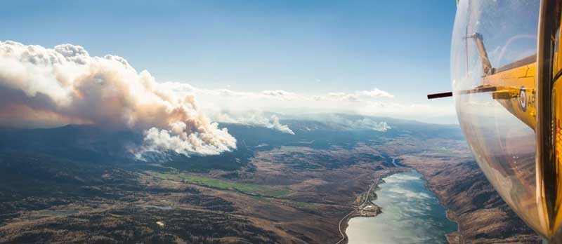 Aerial view of the Tremont Creek Wildfire during Operation LENTUS 21-04 in Kamloops, British Columbia, 11 August 2021. Photo: Lieutenant-Commander Tony Wright, MARPAC/ JTFP