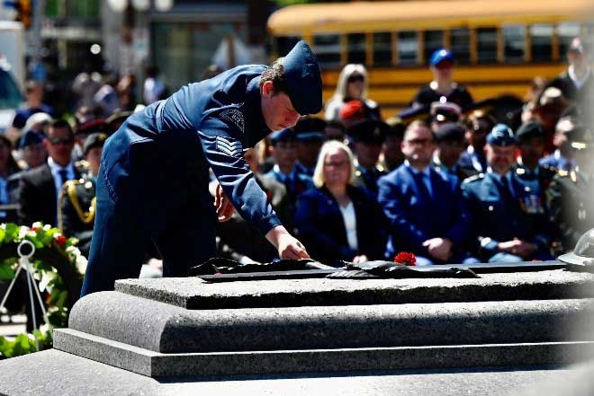 The national ceremony at Canada Lands Square, in the heart of Toronto, was a final, powerful tribute. The CN Tower and landmarks across Canada and overseas—including the Canadian National Vimy Memorial—were lit in red and white.