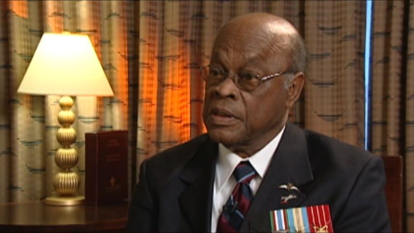 Mr. Jones describes being separated from his unit while coming under fire. Separated from his men, he seeks cover in a trench, killing the German soldier who is occupying it.