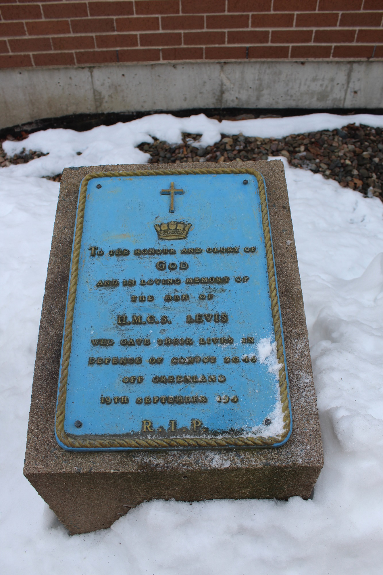 This memorial is dedicated to the men of H.M.C.S. Levis.