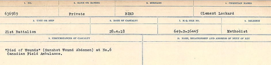 Digital gallery of Private Clement Lockard Bird