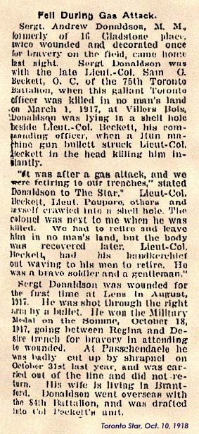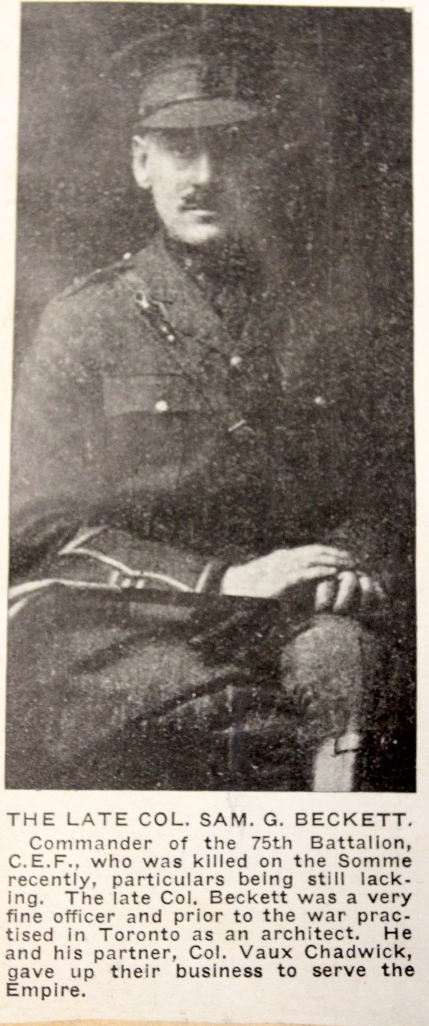 Son of Edward and Mary Ann Butland Beckett, of Toronto; husband of Florence Ethel Fletcher Beckett, of 404, Brunswick Avenue, Toronto, Canada.
