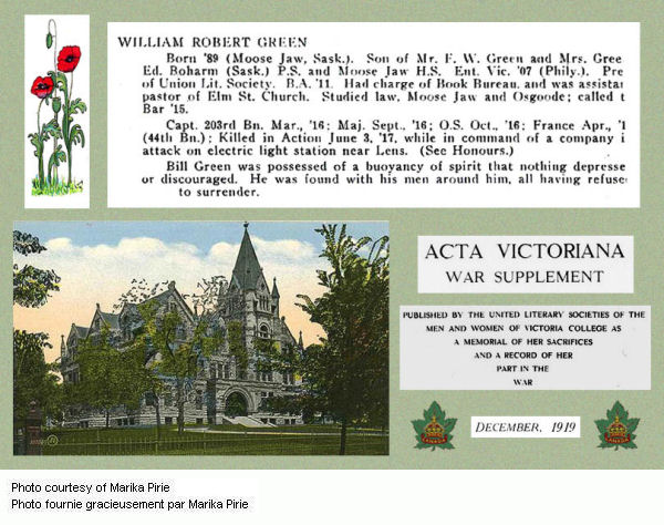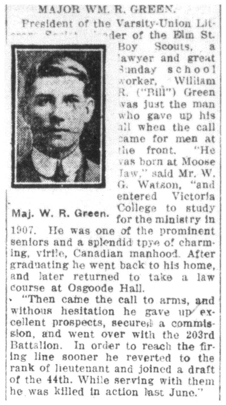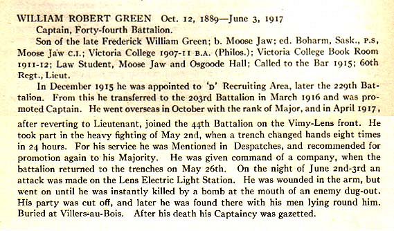 Son of Frederick William and Margaret Green, of Moose Jaw, Saskatchewan. B.A., Victoria College, Toronto, 1911. Barrister-at-law.