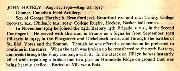 Son of George and Laura Ransom Hately, of 26, Albion St., Brantford, Ontario. M.A., Trinity, Toronto.