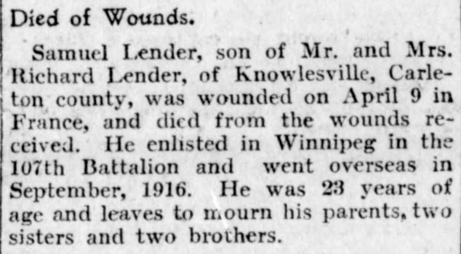 Son of Richard Linder, of Glassville, Carleton County, New Brunswick.