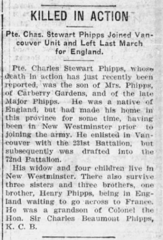 Son of Maj. C. E. and Susan Phipps, of Reigate, England; husband of Edith A. Phipps, of 121, 3rd Avenue, New Westminster, British Columbia.