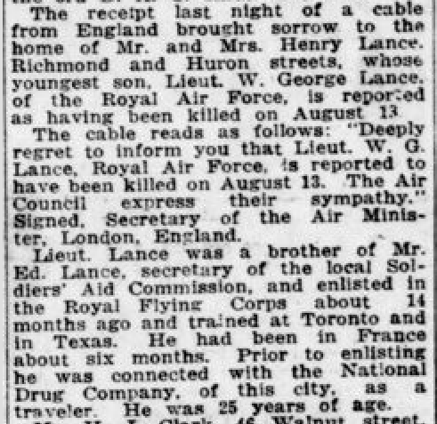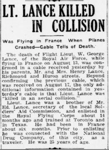 Son of Henry and Elizabeth Lance, of London, Ontario.