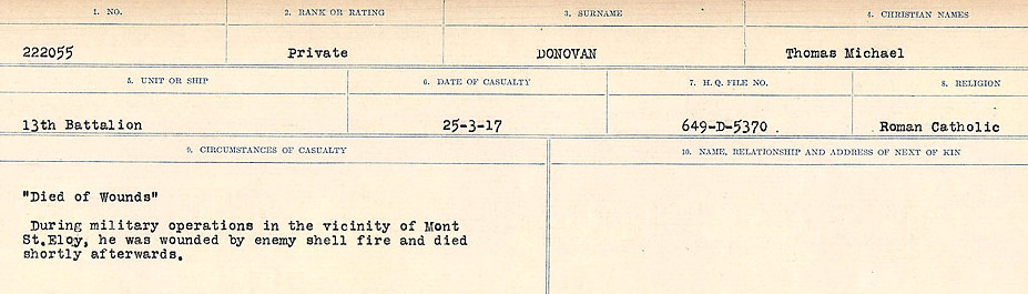 Mont St Eloi is a village in the Department of the Pas-de-Calais, 8 kilometres north-west of Arras. The village stands on high ground overlooking the battlefields of Vimy and Souchez and the main Bethune-Arras road, and the ruined towers that rise from it were used as an observation post during the French attacks at Neuville-St Vaast and Givenchy in May 1915.