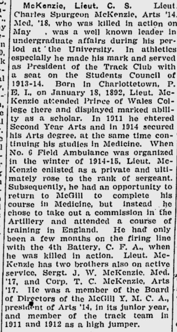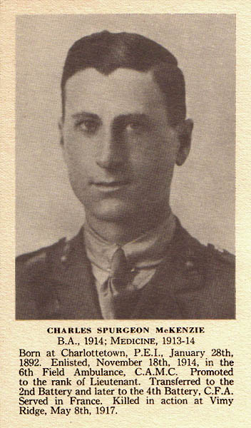 Son of John T. McKenzie and Mary MacDonald McKenzie, of Charlottetown, Prince Edward Island. Graduate of McGill University, Montreal.