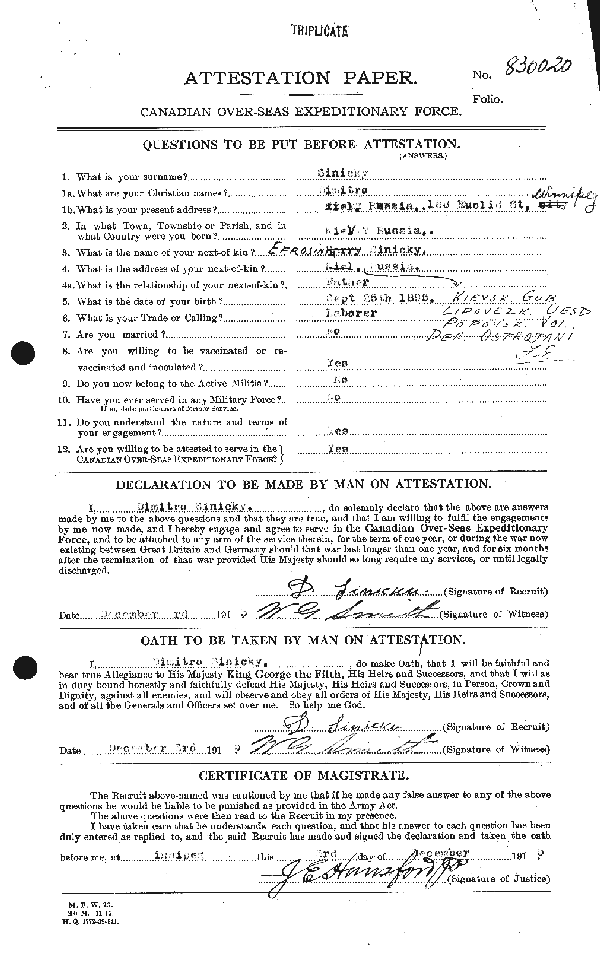 Enlistment: December 1, 1915 Manitoba