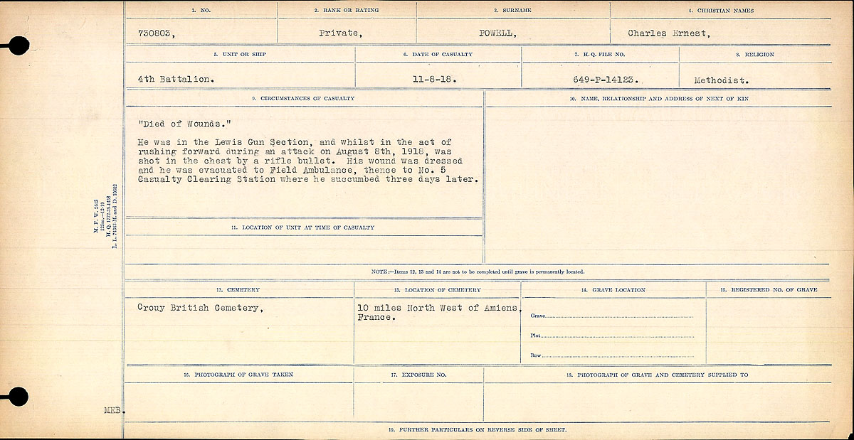 Digital gallery of Private Charles Ernest Powell