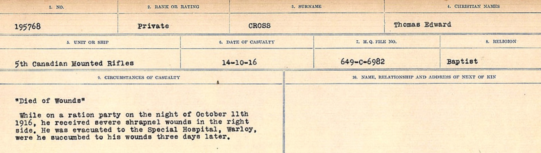 Digital gallery of Private Thomas Edward Cross