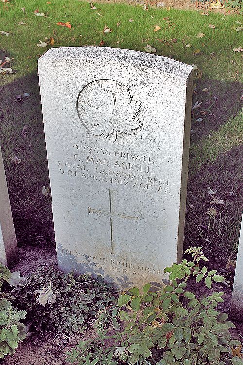 LA CHAUDIERE MILITARY CEMETERY is approximately 3 kilometres south of Lens and is situated on the north-western outskirts of Vimy.