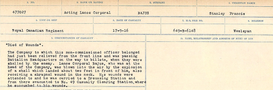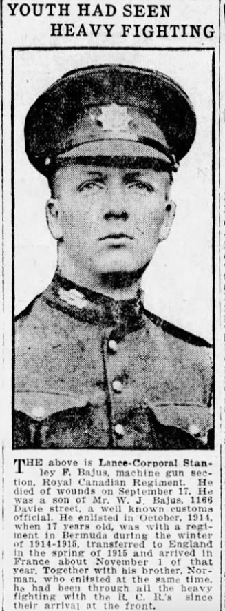 Uncle of Bombardier Norman Stanley Bajus who died on September 14, 1939 while serving with the Royal Canadian Artillery.