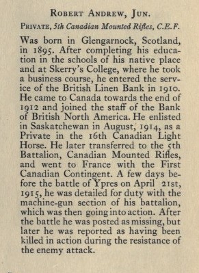 Son of Robert and Mary Andrew, of 30, Milton St., Edinburgh, Scotland.