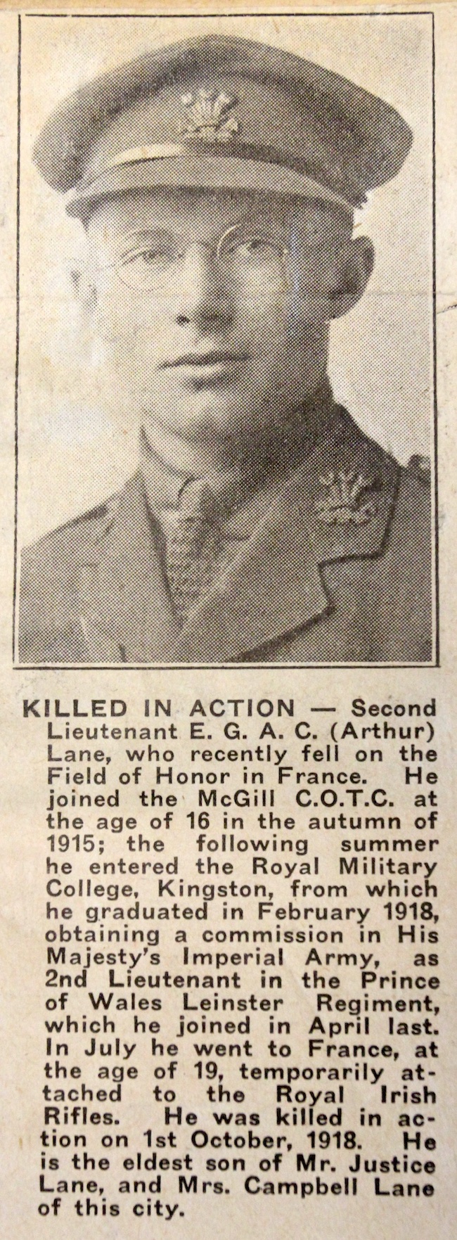 Digital gallery of Second Lieutenant Edward George Arthur Campbell Lane