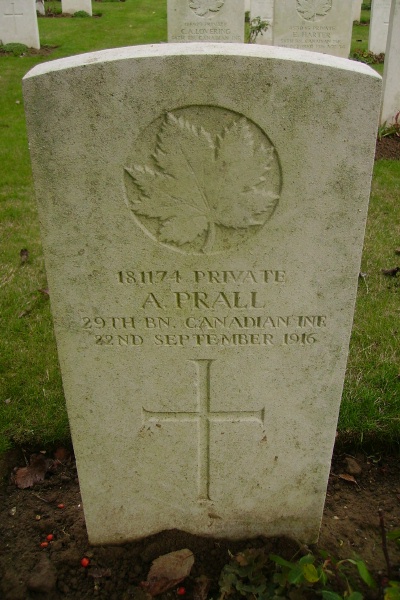 Miraumont is a village about 14.5 kilometres north-north-east of Albert and the Cemetery is some 3 kilometres south of the village on the east side of the road to Courcelette (D107). The ADANAC MILITARY CEMETERY is signposted in the centre of Miraumont.
