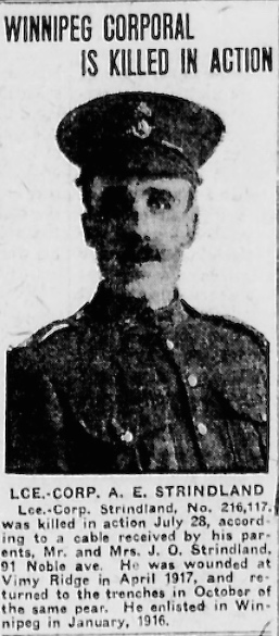 Son of John O. and Elizabeth Strindlund, of 91, Noble Avenue, Winnipeg, Manitoba.