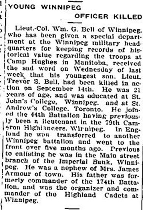 Son of Lt. Col. William G. and Ruby Bell, of Winnipeg, Manitoba.