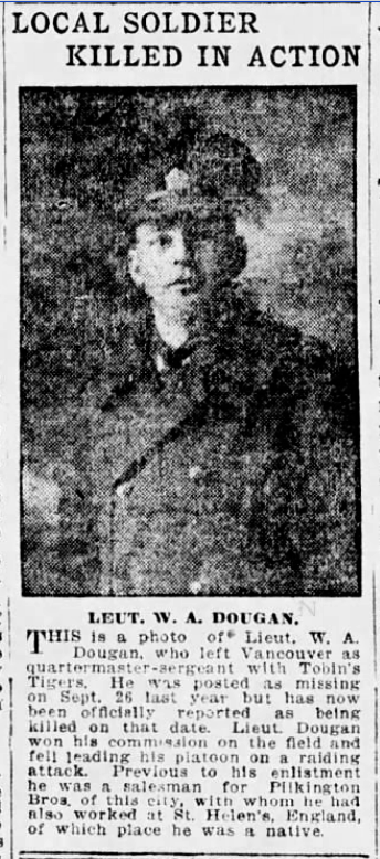 Son of William and Elizabeth Dougan, of Hill End Lodge, Mottram, Manchester, England.