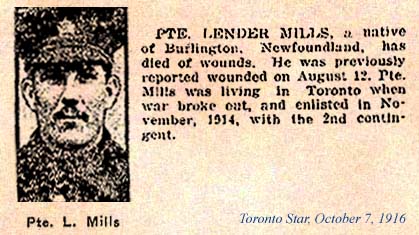 Son of Elijah and Elizabeth Mills, of Burlington, Notre Dame Bay, Newfoundland.