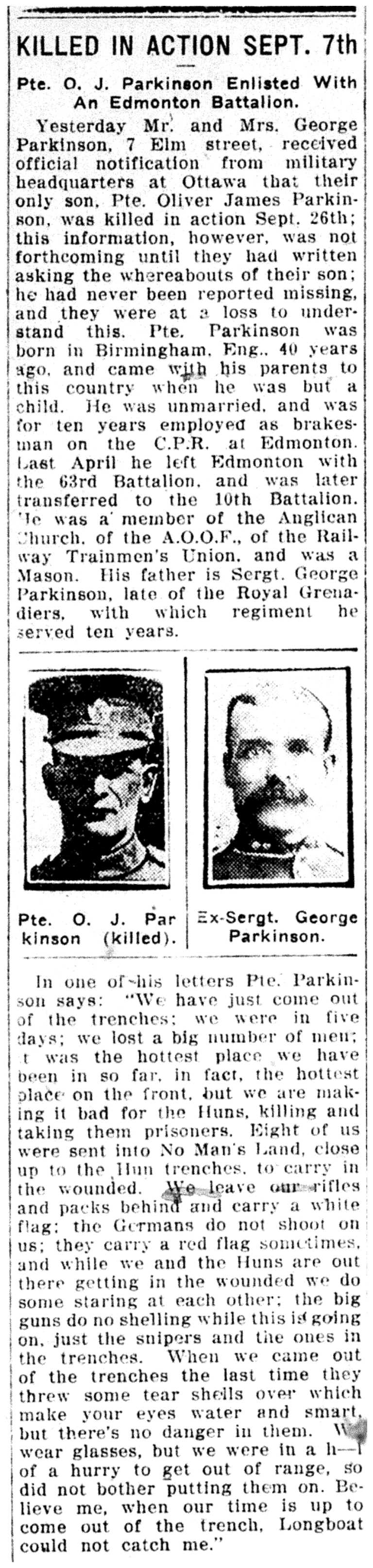 Son of George and Emma Parkinson, of Toronto, Ontario.