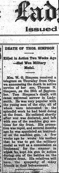 Son of Mr. and Mrs. William G. Simpson, of Third Avenue, Ladysmith, British Columbia. Native of Northfield, British Columbia.