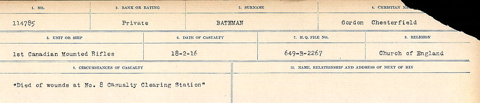 Digital gallery of Private Gordon Chesterfield Bateman