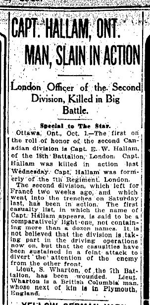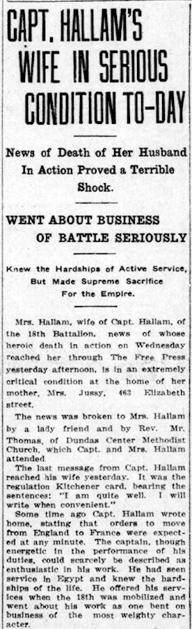 Brother of Norman Hallam who died on October 24, 1914 while serving with the York and Lancaster Regiment, 2nd Bn, Leonard Octavious Hallam who died on March 23, 1916 while serving with the 9th Battalion, King's Own Yorkshire Light Infantry and John Stevenson Hallam who died on November 13, 1916 while serving with the East Yorkshire Regiment, 13th Bn.