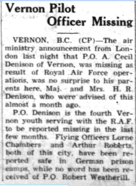 Digital gallery of Pilot Officer Arthur Cecil Denison