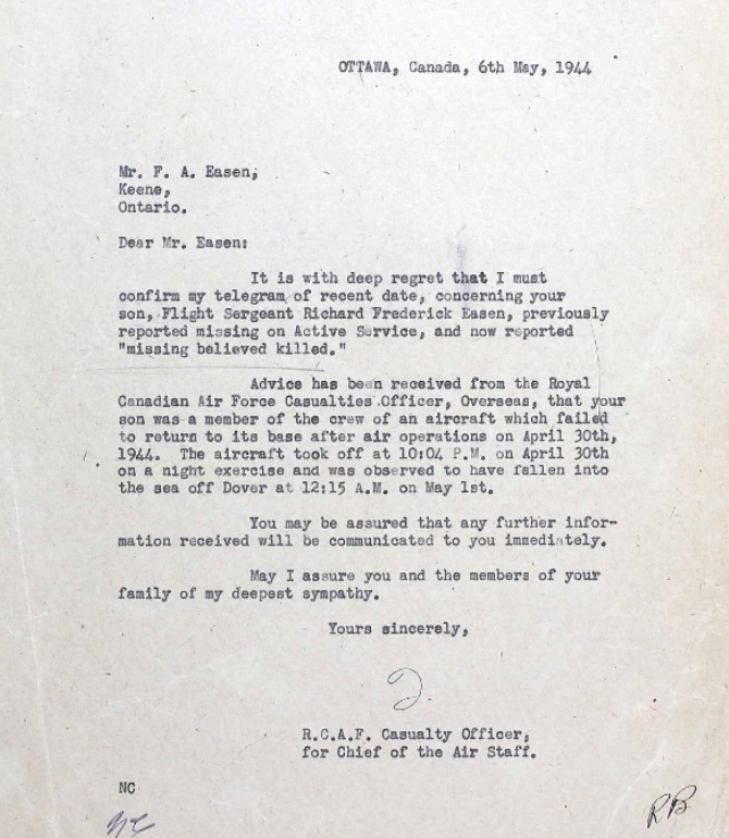 Digital gallery of Pilot Officer Richard Frederick Easen