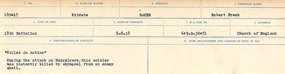 Son of George Edward and Mary Ann Baker, of 2, The Pines, Yew Tree Rd., Milford, Surrey, England.