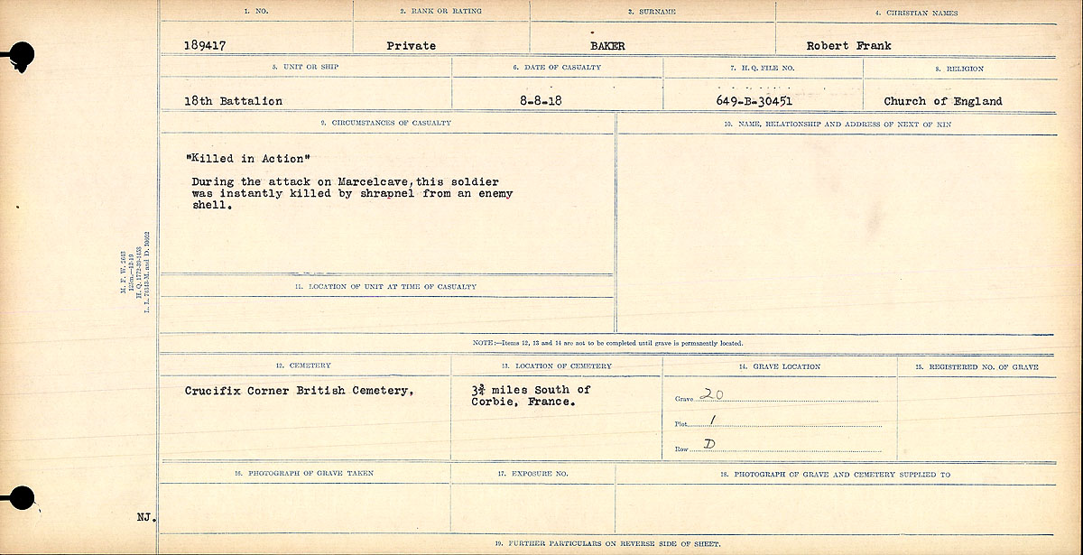 Villers-Bretonneux is a village in the Department of the Somme, on the road from Amiens to St Quentin. CRUCIFIX CORNER CEMETERY is south of the village at the crossing of the road to Demuin and the road from Cachy to Marcelcave.