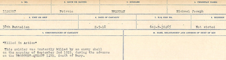 Son of Michael and Catherine Nash Brennan, of Beechgrove, Quebec.