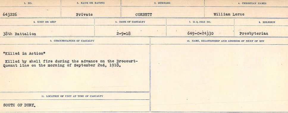 Son of Mrs. Margaret Corbett, of Cookstown, Ontario.