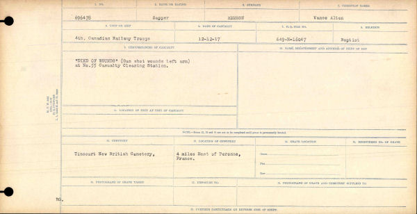 Son of Wentworth and Annie B. Hemeon, of Salem, Nova Scotia.